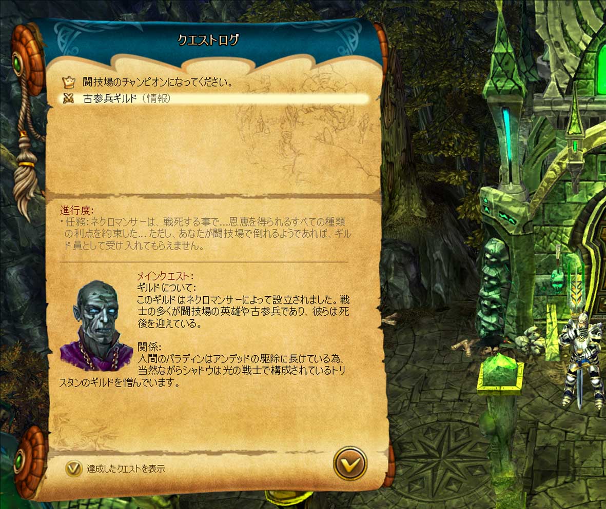 浮気しそうなのを振り払い・・・ 初っ端のアサシンを振り払うとあっけなく ベテランギルド(古参兵ギルド)に加盟出来ます その内容がこんな感じ クエストログに詳細とか 上手く使い回ししてるなーと感心