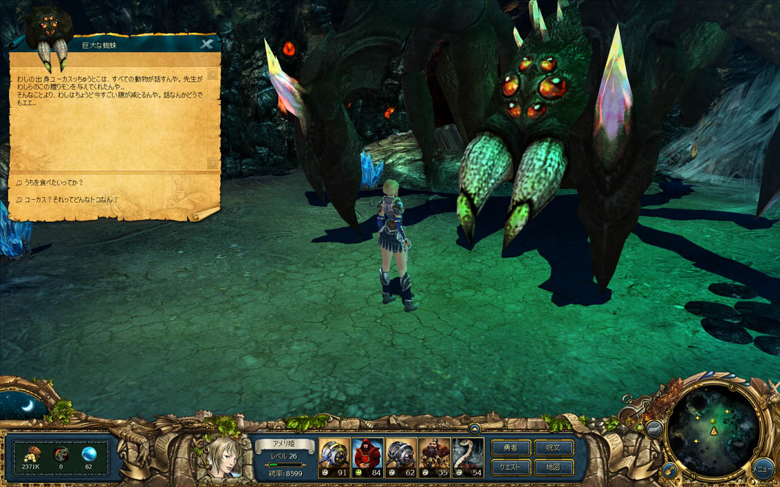 お待たせしました! きっちり翻訳済みですよ♪ デロスのチャット・ログ及び クエストは完成・・でしょう・・・たぶん さらにテクロン島へのお遣いクエの一部まで翻訳を開始しました。 翻訳している本人は今だモンテロでうろついているまんまなので 少し間ゲームを進行させていきます・・ また3/1~3/3まで韓国出張でその前後の準備と事後処理がありますので 少し間休止する事になりそうです^^; ブログは合い間に更新しますので今後もよろしくです♪ |
