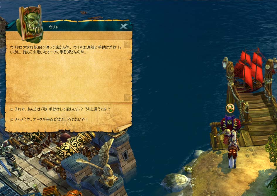 UI周りやったり 会話ログやったりと すこーしずつ進めています もしかしてこのキャンペーンって・・ 確認したわけじゃないから公言しないでおこう・・ とりあえずデビル島での主要なおっさん二人の会話を 翻訳する事でこのキャンペーンが どんなものか分かってきた気がする |