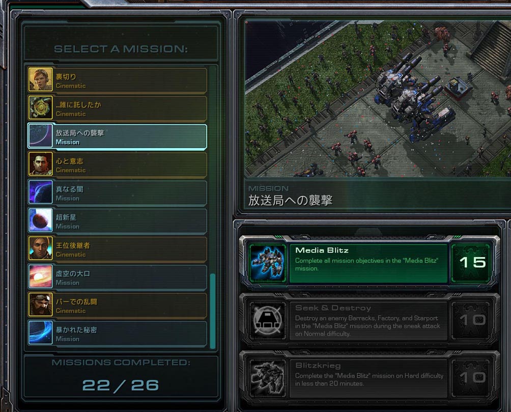 キャンペーンの会話から アップグレードや傭兵 ヒントや研究日誌 そしてムービーとやる事は一杯だったが 充実した 問題は 未だにどうプログラムをしているのか 字幕が日本語にならないところ データに存在しない(ことはないんだろうけど)英語字幕が出て来るところが 多々あるということだ 解決の糸口が分かれば 画面内でポップアップされる名詞や、ヒントメッセージなど 全てを日本語化出来ると言うのに、これは残念 なによりムービーシーン、TVニュースはいまだお手上げ状態だということ 誤字脱字は直せてもこれだけはね~ あ・・あとステットマンの記録が表示されないのもいまだ放置だったなぁ・・・ 終わりが近づくほどにその未完成度さに苛立ちが隠せない タイトル付けは難しいね 最初は映画のタイトルが多かったので 楽勝やんって思っていたが あとは日本語に直すと 表現しにくい言葉ばかりだったもんなぁ~ 日本語化:Ver.0.9 |
