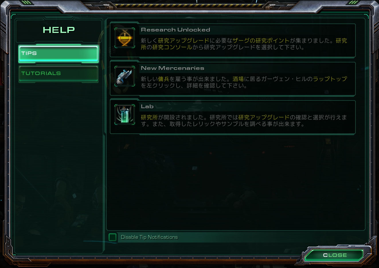 ヒントやTips、研究ポイントなどの日本語化も可能だと分かり ヴァージョンを一気に0.1まで引き上げました^^ 手を付けているところはまだ僅かではありますが 確実に日本語化の幅を増やせて行けそうです まずはアップデートです Ver0.1 GameStrings.rar |
